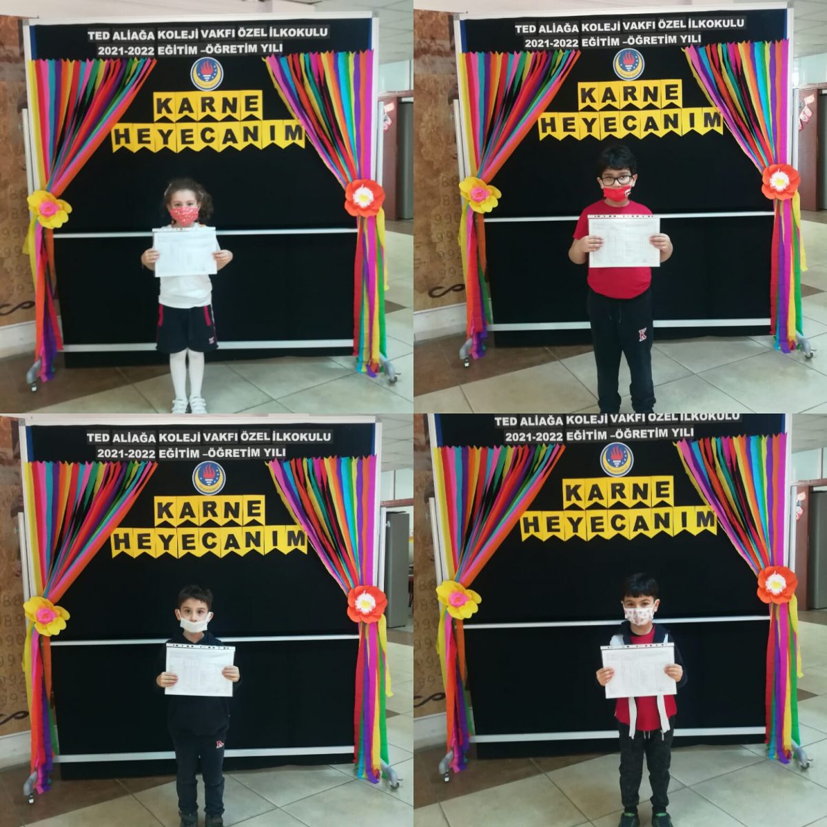 TED Aliağa Koleji Vakfı Özel İlkokulu 1. sınıf öğrencileri belki de ömür boyu hep heyecan ile anımsayacakları ilk karne coşkusunu yaşadılar. Okuma ve yazma becerilerinin dışında daha pek çok bilişsel, sosyal ve fiziksel kazanımlarla kendilerini geliştiren öğrencilerimiz güzel bir tatili hakkettiler. Karnelerini alan öğrencilerimize, onların başarısında büyük emekleri ve özverili çalışmaları olan öğretmenlerimize ve tüm velilerimize iyi tatiller dileriz.