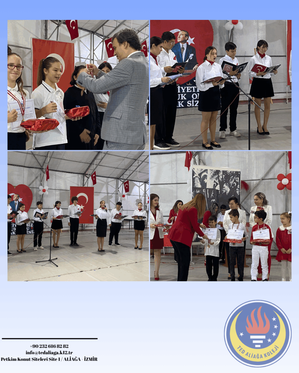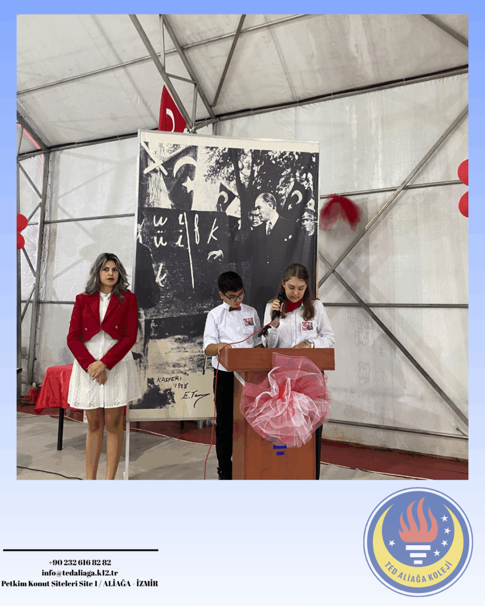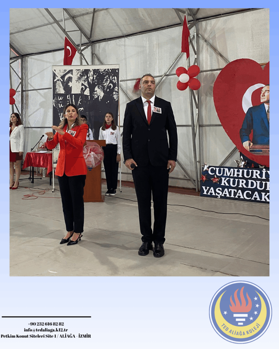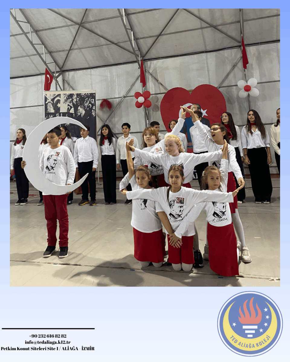 Okulumuzda düzenlenen programda öğrencilerimiz, Cumhuriyet temalı sergilerle, halk oyunlarıyla, oratoryalarıyla ve marşlarla Cumhuriyet’in anlamını bir kez daha yaşattılar.