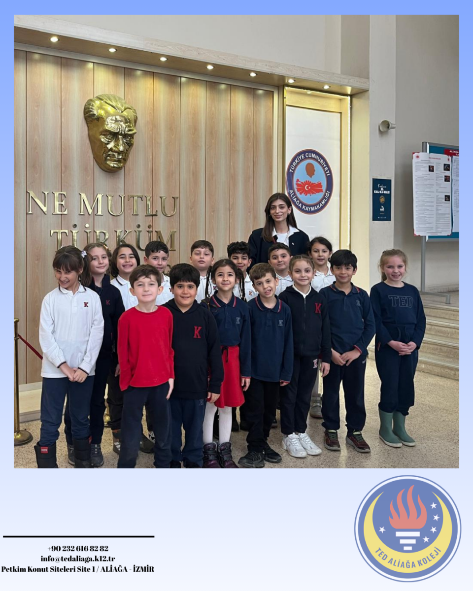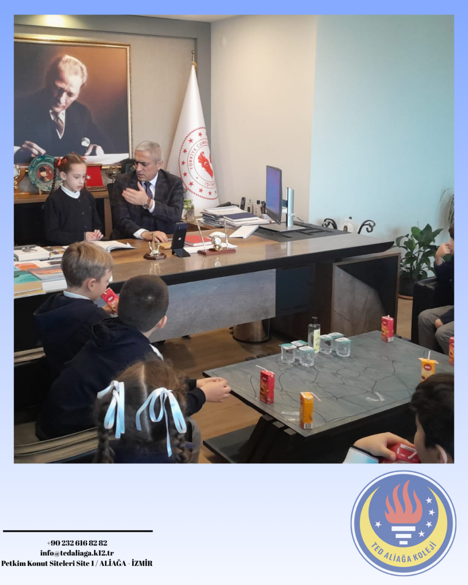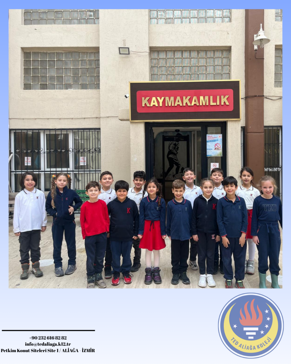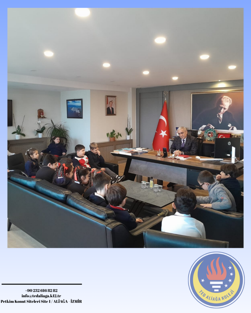 TED Aliağa Koleji Vakfı Özel İlkokulu 2. sınıf öğrencilerimiz, Hayat Bilgisi dersinde işledikleri “Yönetim Birimleri ve Kaymakamın Görevleri” konusu kapsamında Aliağa Kaymakamı Sayın Zekeriya Güney’i ziyaret etti. Öğrencilerimiz, kaymakamın görevleri ve kamu hizmetlerinin işleyişi hakkında bilgi alırken merak ettikleri soruları da doğrudan iletme fırsatı buldu. Yerinde öğrenme deneyimi yaşayan öğrencilerimiz için oldukça verimli ve anlamlı bir eğitim süreci gerçekleşti. Nazik kabulleri için Sayın Kaymakamımıza teşekkür ederiz.