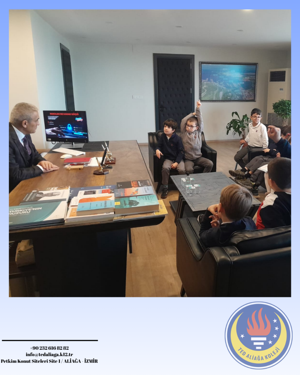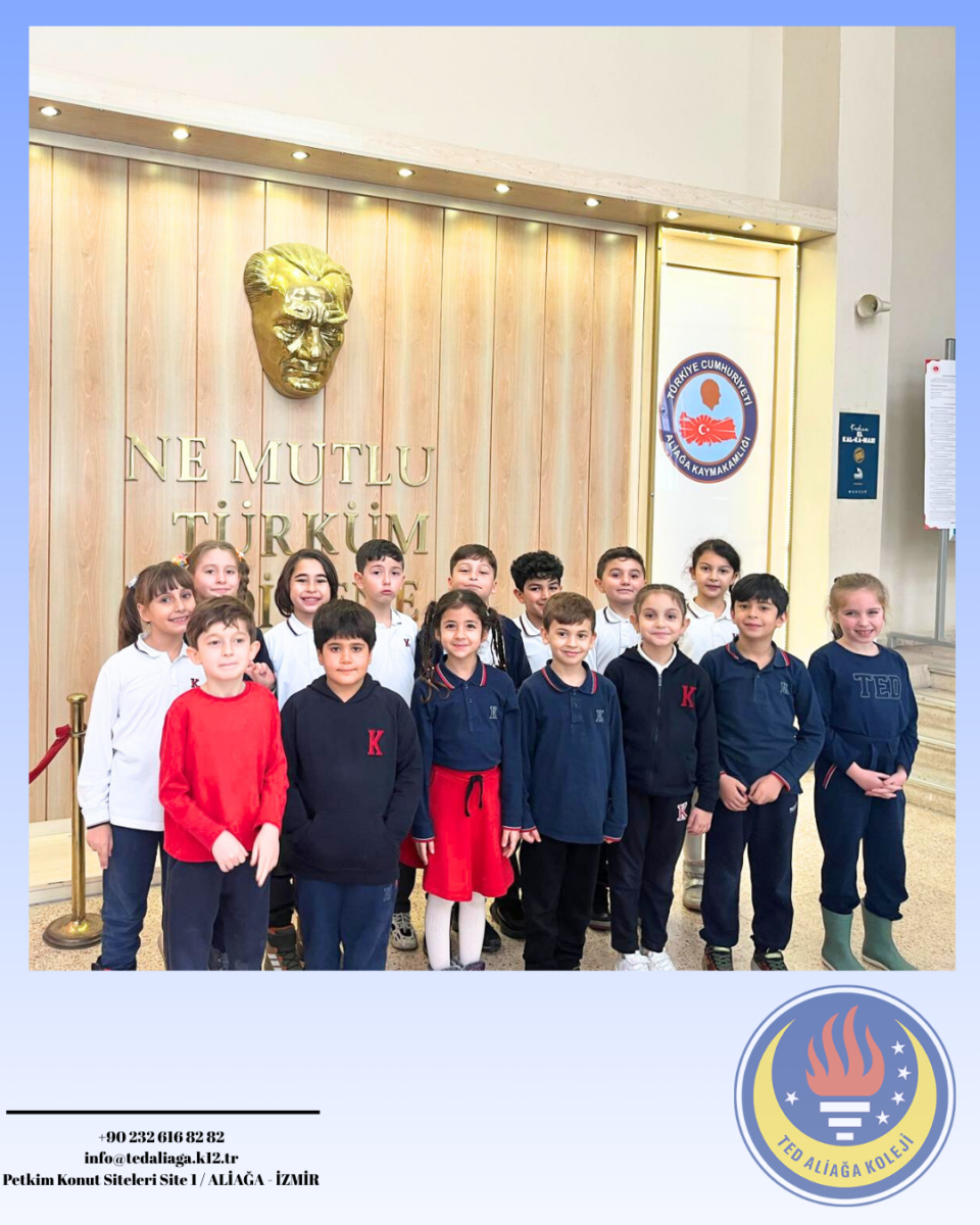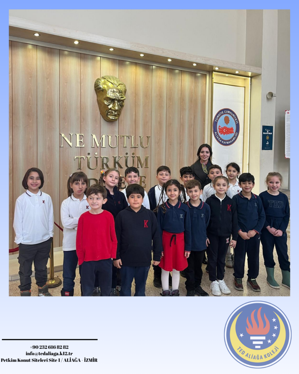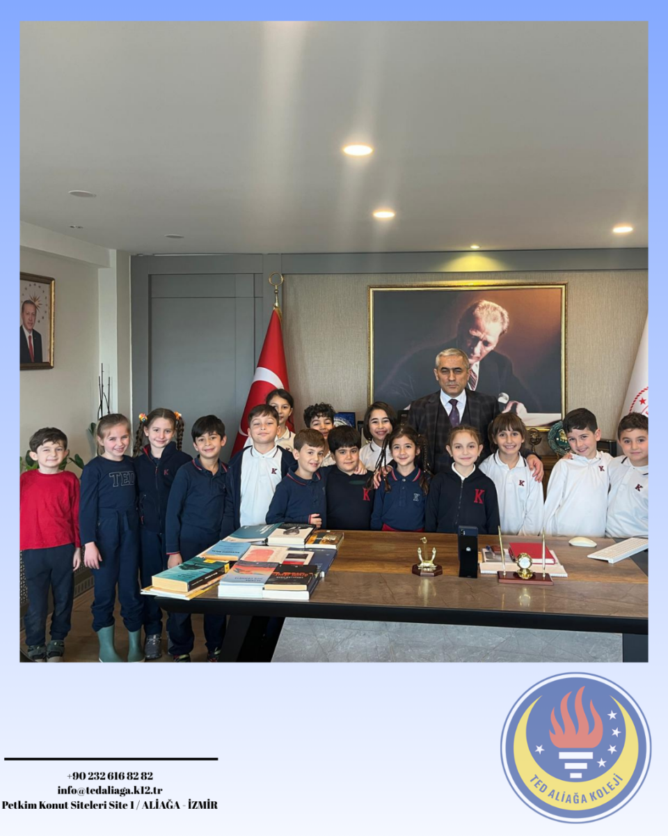 TED Aliağa Koleji Vakfı Özel İlkokulu 2. sınıf öğrencilerimiz, Hayat Bilgisi dersinde işledikleri “Yönetim Birimleri ve Kaymakamın Görevleri” konusu kapsamında Aliağa Kaymakamı Sayın Zekeriya Güney’i ziyaret etti. Öğrencilerimiz, kaymakamın görevleri ve kamu hizmetlerinin işleyişi hakkında bilgi alırken merak ettikleri soruları da doğrudan iletme fırsatı buldu. Yerinde öğrenme deneyimi yaşayan öğrencilerimiz için oldukça verimli ve anlamlı bir eğitim süreci gerçekleşti. Nazik kabulleri için Sayın Kaymakamımıza teşekkür ederiz.