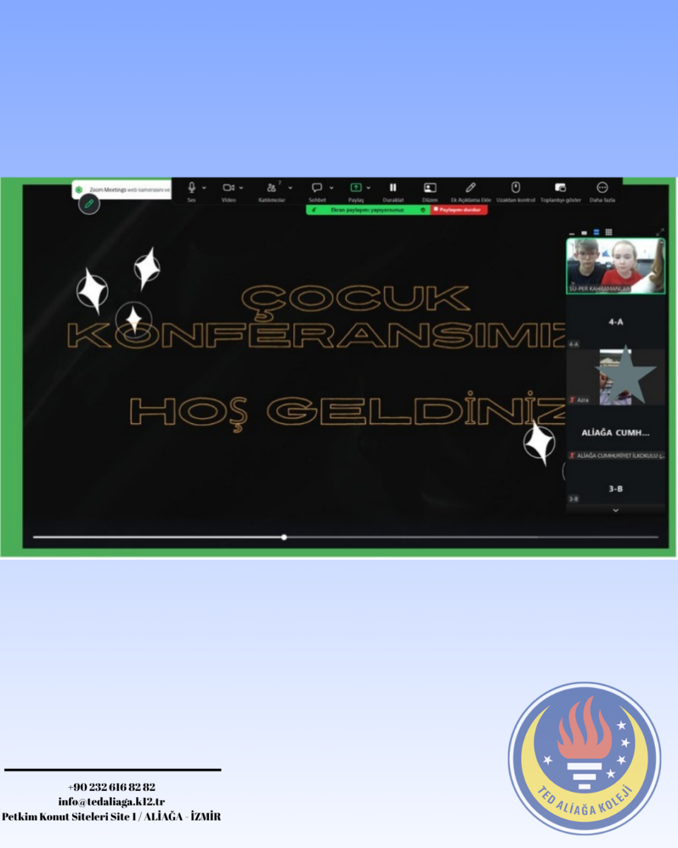 6-7-8 Nisan tarihlerinde TED Aliağa Koleji Vakfı Özel İlkokulu FPS Proje Takımımız tarafından Online Uluslararası Çocuk Konferansı düzenlendi.