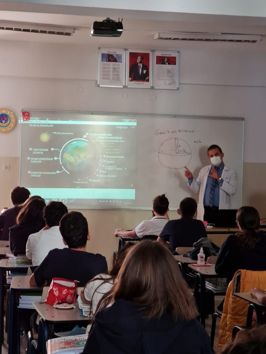 8A sınıfı öğrencilerimiz “Mevsimler ve İklim” ünitesini, coğrafya öğretmenimizin anlatımıyla pekiştirdi.