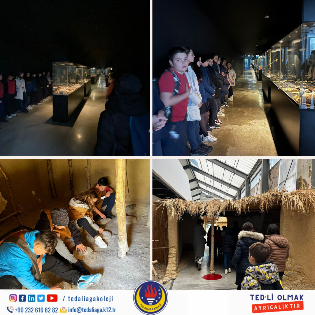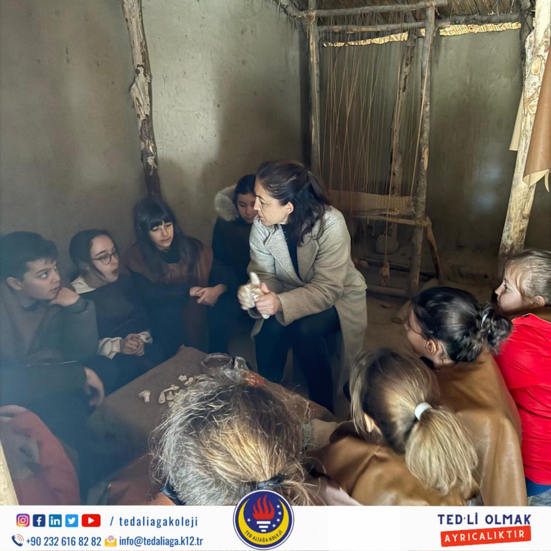 TED Aliağa Koleji Vakfı Özel Ortaokulu 5. ve 6.sınıf öğrencileri Sosyal Bilgiler dersi kapsamında “ilk çağda yaşayan medeniyetlerin yaşam tarzlarını ve kültürleri”ni birebir deneyimleyebilmek maksadıyla “Yeşilova Höyüğü”ne ziyaret gerçekleştirdiler.
