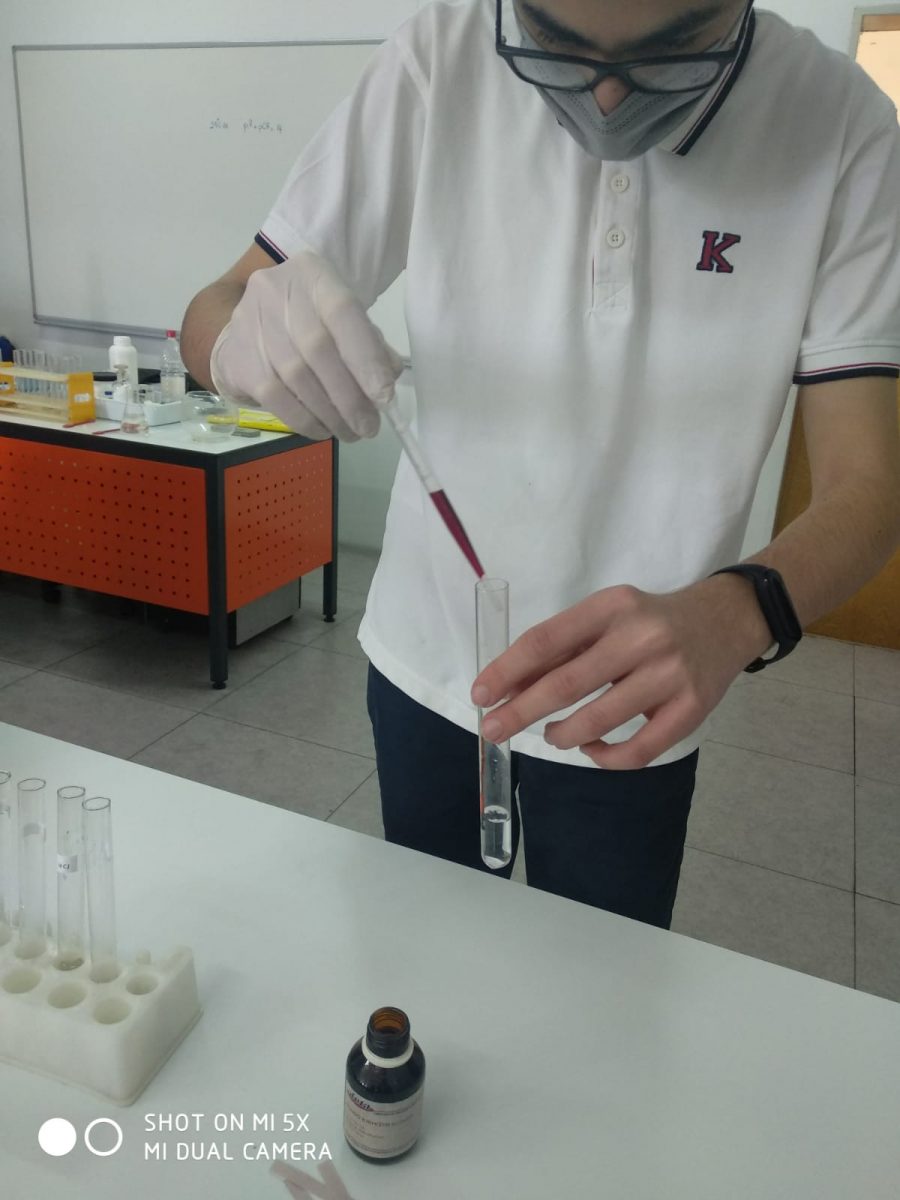 TED Aliağa Koleji Vakfı Özel Lisesi 10. sınıf öğrencileri Kimya dersinde asit ve bazları ayırt etmek, indikatörleri tanımak üzere deneyler yaptılar.